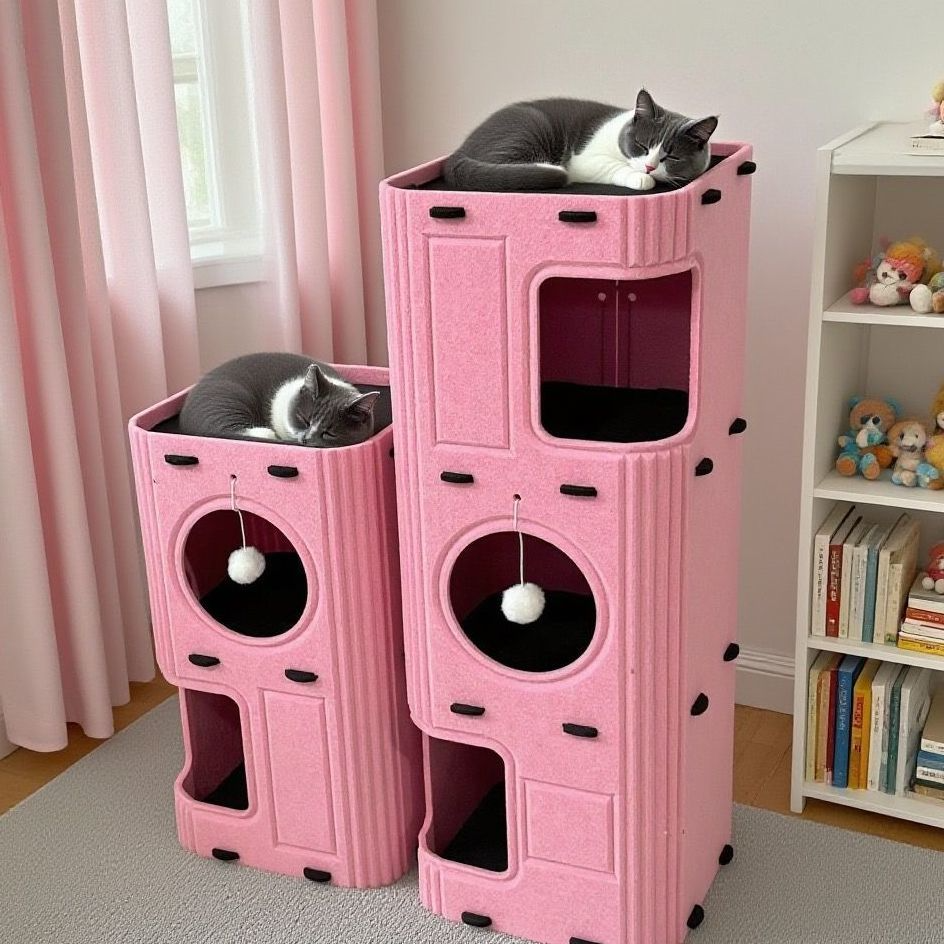 Three-layer Cat Cave Felt Cat Climbing Tower featuring a simple yet fashionable design, this cat tree seamlessly integrates into various home decor styles.